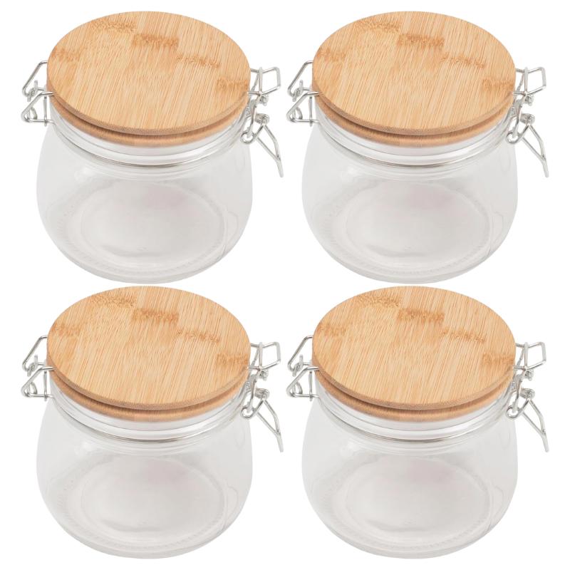 Feito em vidro grosso de alta resistência, ele conserva os alimentos por muito mais tempo, enquanto a tampa de bambu com vedação de silicone e trava de metal garante fechamento totalmente hermético — preservando o sabor e a crocância dos seus mantimentos.